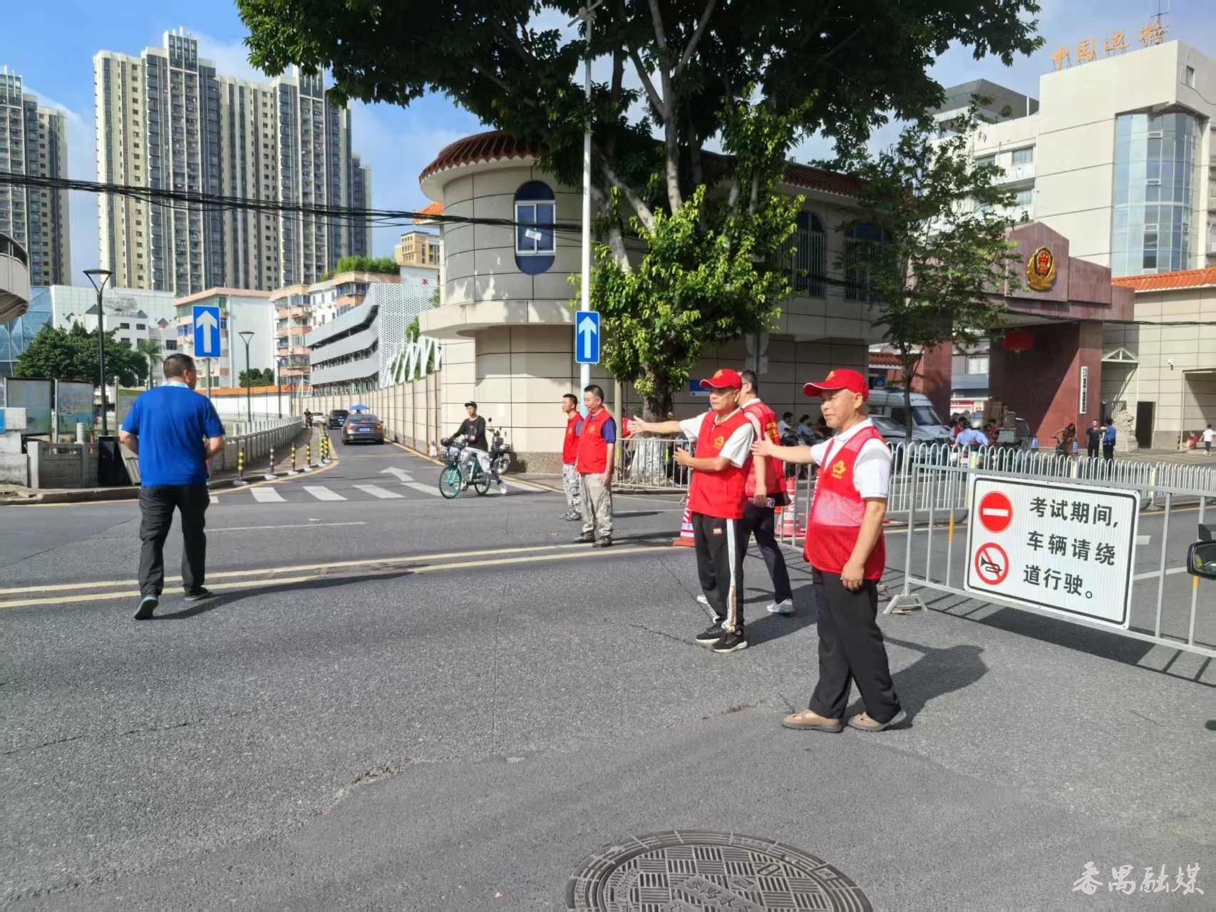 考点外的“红马甲”成为护航高考中一道靓丽的风景线